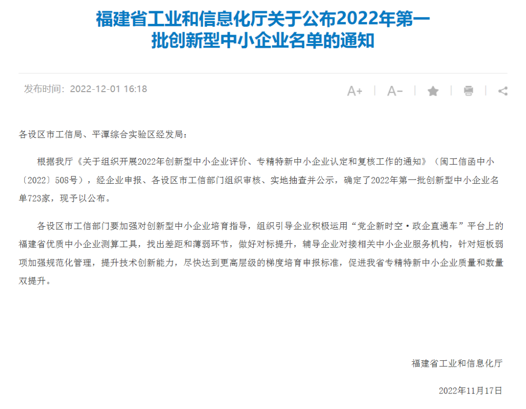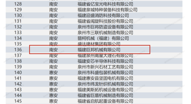 巨邦機(jī)械上榜福建省2022年第一批創(chuàng)新型中小企業(yè)名單 |