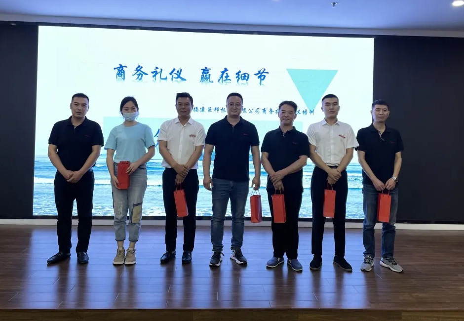 為了提升員工商務(wù)活動(dòng)的行為規(guī)范,強(qiáng)化個(gè)人禮儀習(xí)慣的養(yǎng)成,提升企業(yè)對外形象,5月16日,巨邦機(jī)械于中國石材城黨群(人才)服務(wù)中心組織開展了商務(wù)禮儀培訓(xùn)。公司高層領(lǐng)導(dǎo)攜國內(nèi)外銷售精英,及高層管理人員參加了培訓(xùn)。