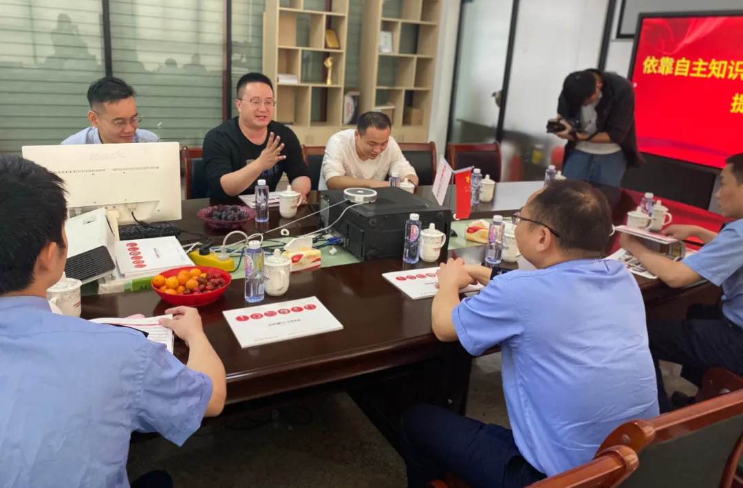 隨后,雙方就“依靠自主知識產(chǎn)權(quán),提高核心競爭力”主題開展了座談會(huì),調(diào)研組聽取了巨邦機(jī)械知識產(chǎn)權(quán)的工作匯報(bào),對巨邦的知識產(chǎn)權(quán)工作給予了肯定,并圍繞商標(biāo),專利,特種設(shè)備的檢測、安全性、標(biāo)識等重點(diǎn)問題和與會(huì)人員展開深入交流。